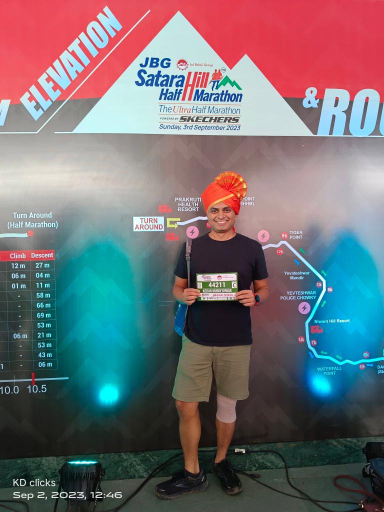 As a passionate runner, I was used to running 3-4 days a week. The Satara Hill Marathon needed extra preparation. Training for this challenging race meant focusing on both physical and mental endurance. I added regular hill runs to my routine to adjust to elevation changes. This strengthened my legs for the tough uphill and downhill terrain. Maintaining a steady pace on steep inclines was crucial, as was adjusting my diet and hydration for higher energy demands. Stretching and recovery became more consistent to avoid injuries. As race day approached, I prepared by studying the route, water stations, and more.